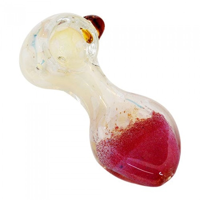 Silver Fumed Glass Hand Pipe w/ Pink & White Color