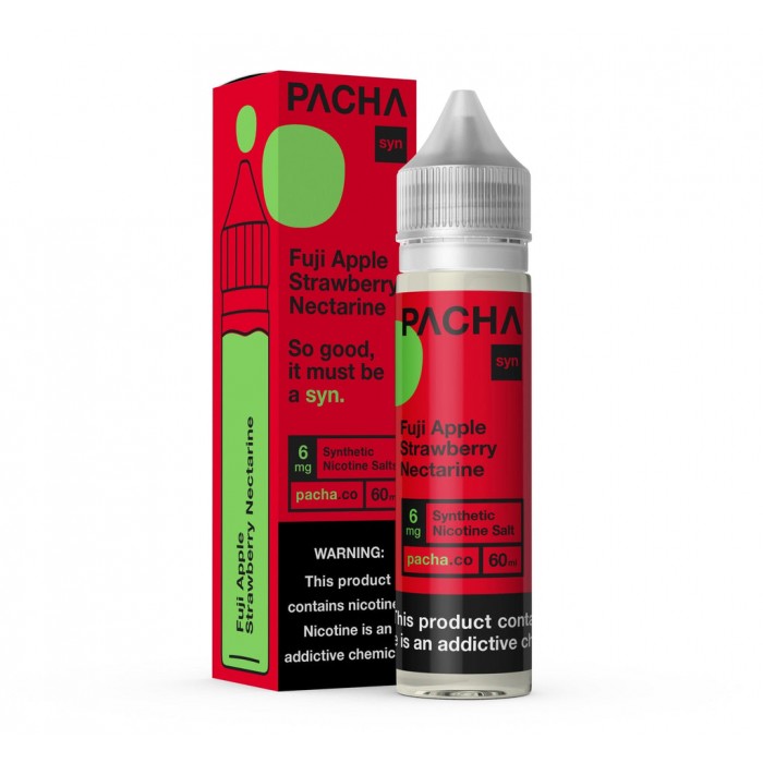 Fuji Apple Strawberry Nectarine E-Liquid by Pacha Syn - Pacha Syn E-Juice is introducing us to her newest fruit flavored e-liquid offspring. This premium e-juice delivers a mouthwatering blend of Fuji apple and wild strawberry infused with sweet sunkissed nectarine fruit flavors. This exciting fresh fruit trio smells amazing and packs satisfying flavor.