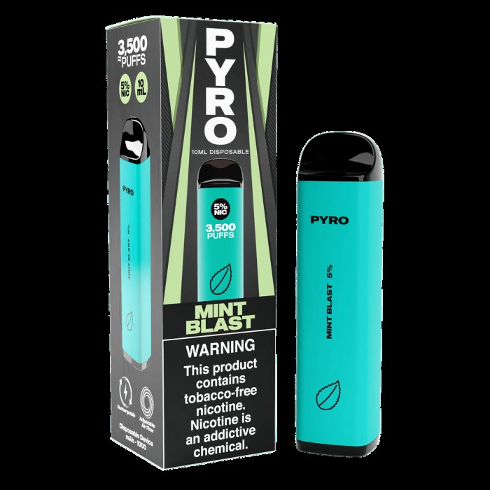 Upgrade to PYRO 3500 PUFFS and light it up with sweet and delicious flavors, which are pure fire. This device is smooth, sleek, and easy to grip providing 3,500 Puffs of endless juice that will have you vaping for more. With 5% Tobacco Free Nicotine (TFN) in each device, get that perfect hit with every inhale. Get lit and become a PYRO-maniac.
