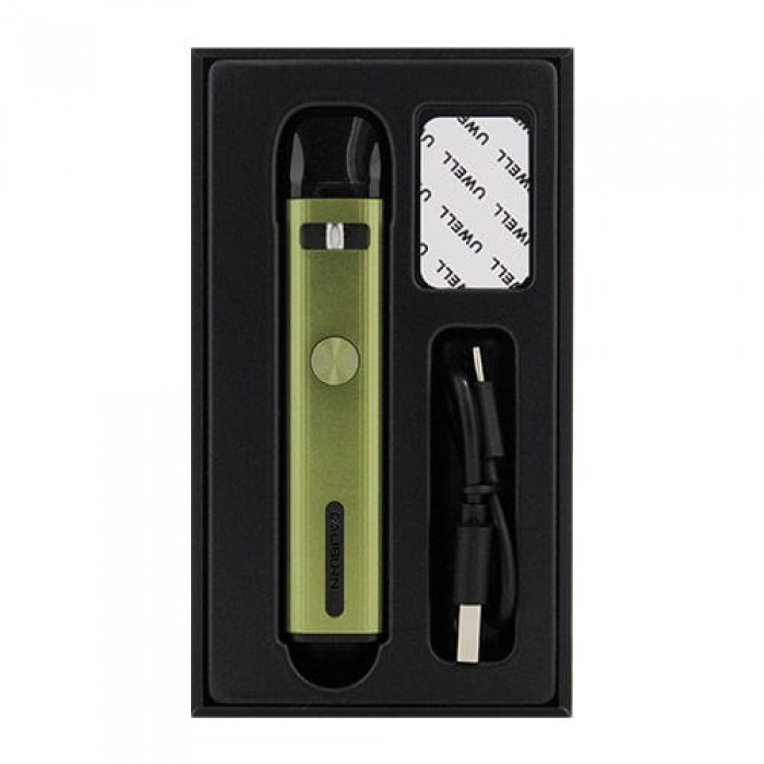The Caliburn G2 from Uwell has a E-liquid check window that helps you see the level of juice remaining so you can vape without worrying whether or not your device has juice. Also the Caliburn G2 comes in 6 different colors: Carbon Black, Pyrrole Scarlet, Shading Gray, Gradient, Ultramarine Blue, and Cobalt Green.